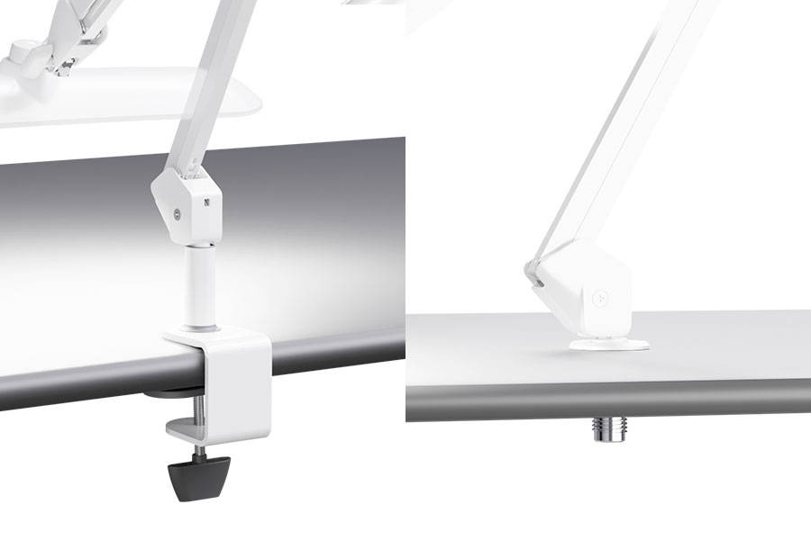 Includes both a heavy-duty clamp and a built-in desk mount kit.